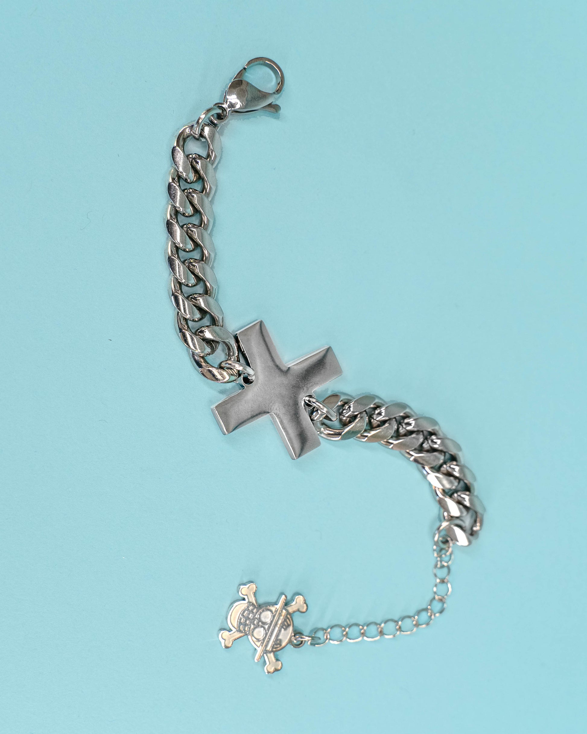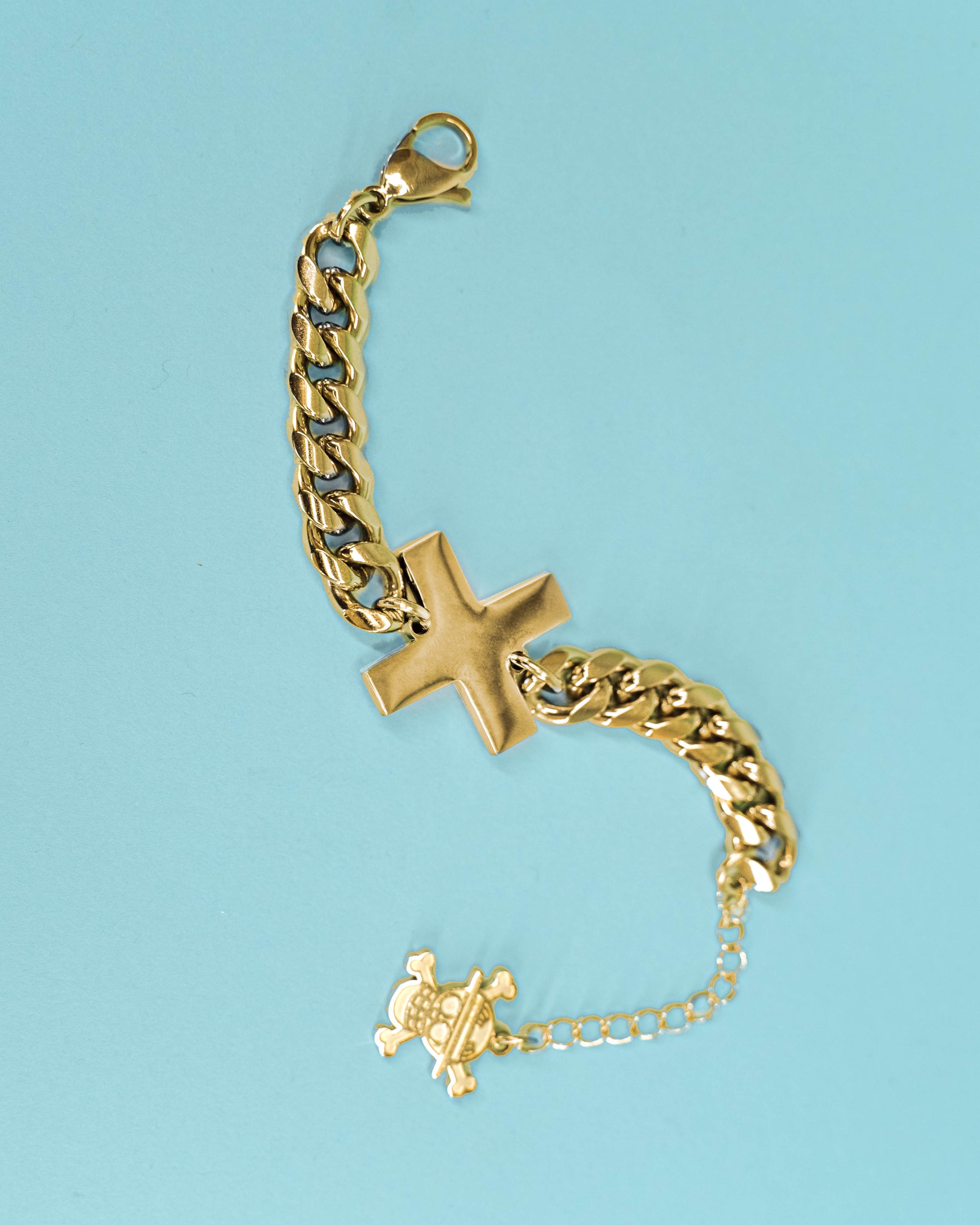 The promise of the crew's bond takes shape with a beautiful cuban link design. Attached with their Jolly Roger at the end of it's extender, the Nakama Bracelet is the perfect piece for all fans of the series in both Gold and Silver.